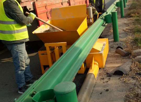 小型攔水帶機(jī)主要是指其能生產(chǎn)出的攔水帶尺寸較小,一般不超過25*25cm.機(jī)器設(shè)計緊湊,體型較小,特別適合高速路面護(hù)欄板下小型攔水帶施工。一人控制方向,一人上料,一人收尾即可。操作簡易上手快。